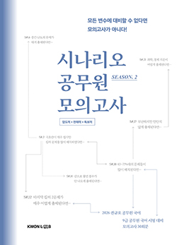 2025년 지방직, 국가직 9급 출제 경향을 분석하여 가장 유사한 실전 그 자체의 모의고사를 만들었습니다. 17문제는 정답률 70% 이상의 문제로 쉽게 구성하고 3문제는 어려운 문제로 구성하였습니다.